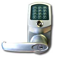 The weatherproof X45 is our top-of-the-line door lock that's operated by the same iButtons you use with your TimePilot timeclock system. With the included software, you can give or deny individual employees access to the area protected by the lock, as well as track who used the lock and when it was used. For more details about the locks, click here. (But be sure to use the link below or call us to get the special newsletter-reader-only price!)