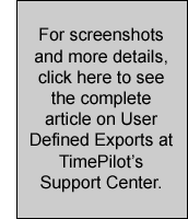 1. In TimePilot Central, click the “File” menu, then run your cursor over “User-Defined Export” and click “Create/Edit User-Defined Exports” in the menu that appears.